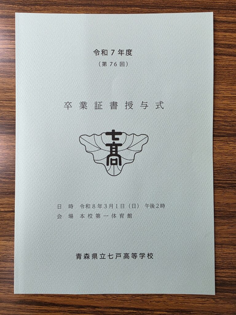 七戸高校生3年生の皆さん、ご卒業おめでとうございます。